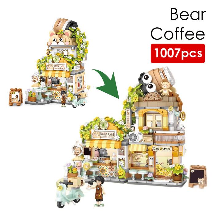 Block City - Street View Bear Cafe Panda Tea House Puzzle Block Bricks Mainan Anak Balok Susun Toys
