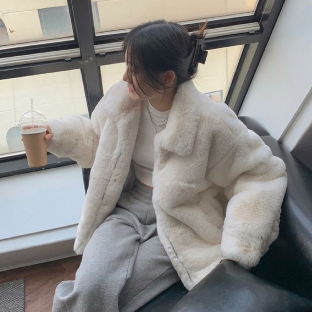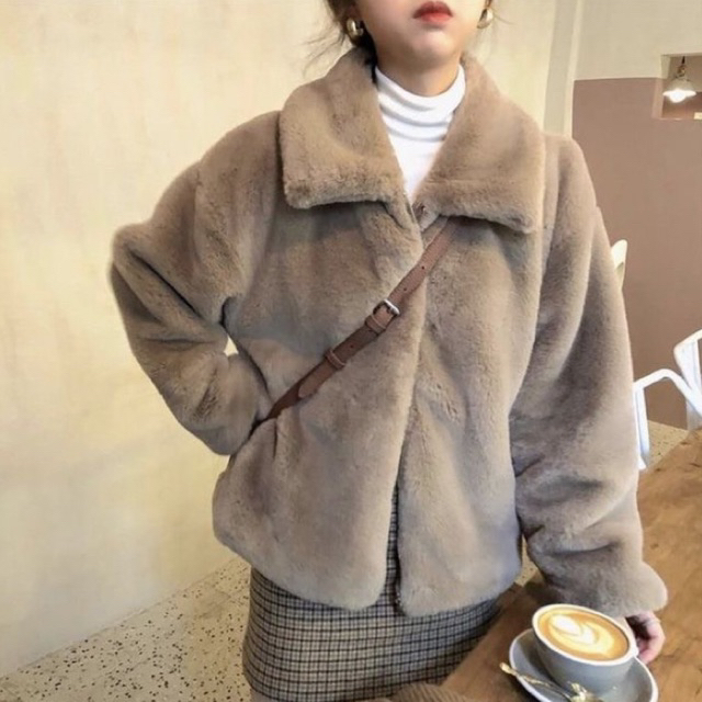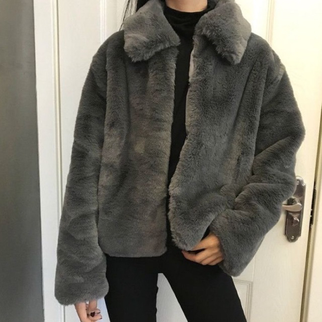 Jaket Fuzzy Crop Wanita Bulu Fur Warm Coat Sherpa Outwear