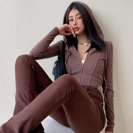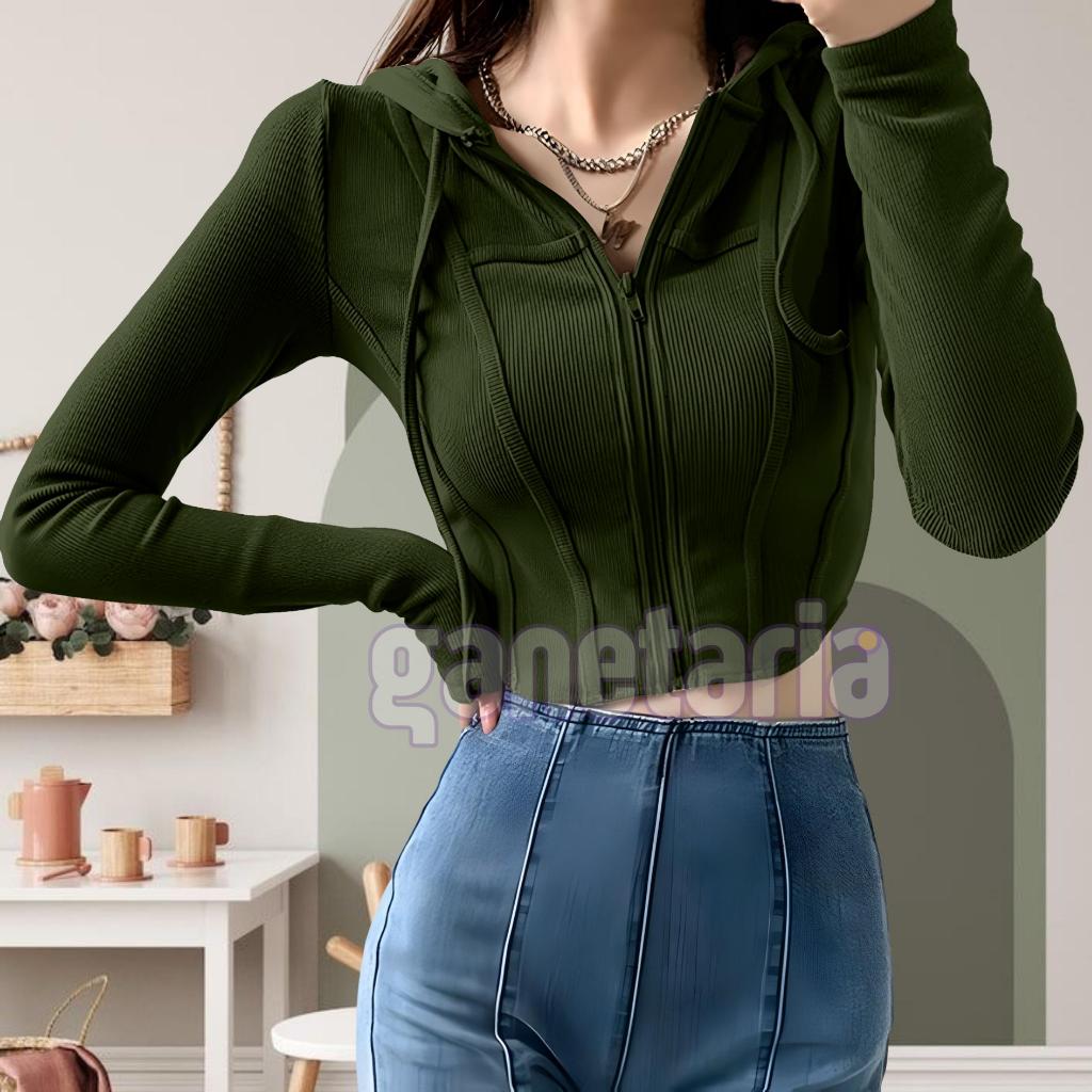 Grania Premium Jaket Hoodie Crop Top Wanita Kekinian Outfit Ootd Korean Style Jacket Hudie Cewek