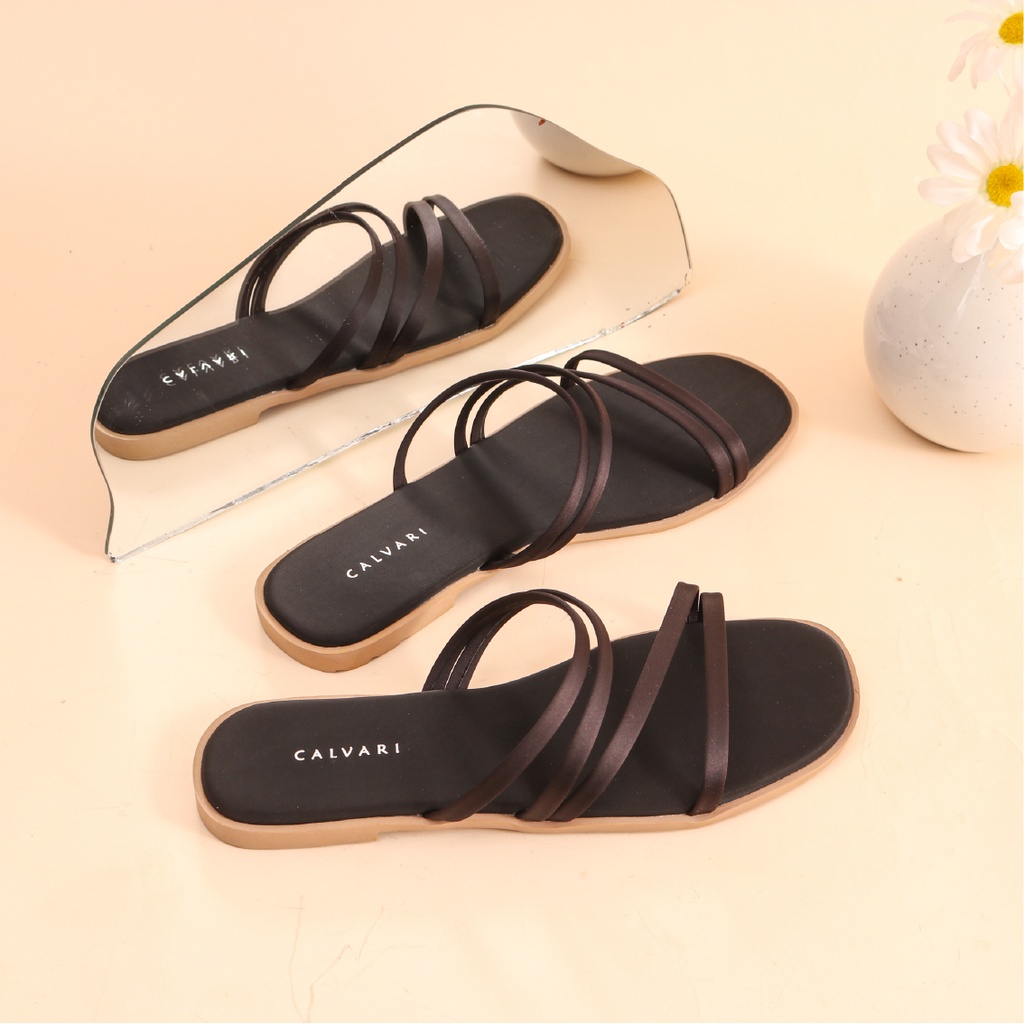 CALVARI - STACY Sandal Wanita Korea Teplek Casual Kekinian Size 36 - 40 Sendal Flat Cewek Kasual