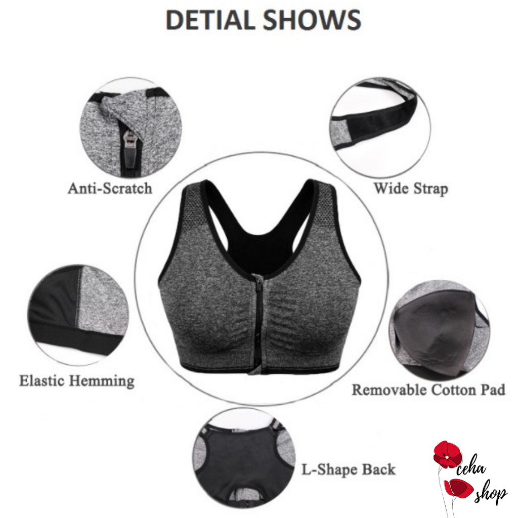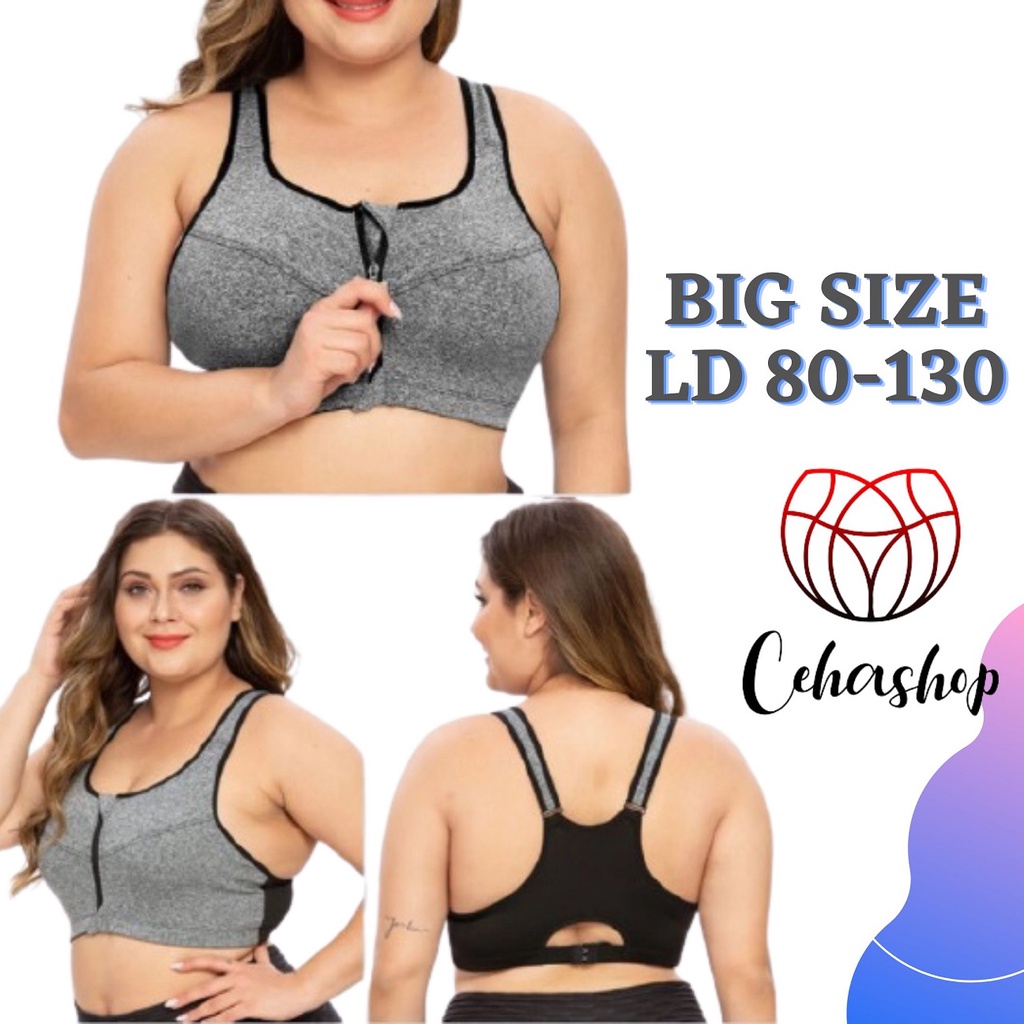 CEHASHOP Bra BH Sport Jumbo Big Size Resleting Buka Depan Kait Depan Olahraga High Impact Busa Tanpa Kawat