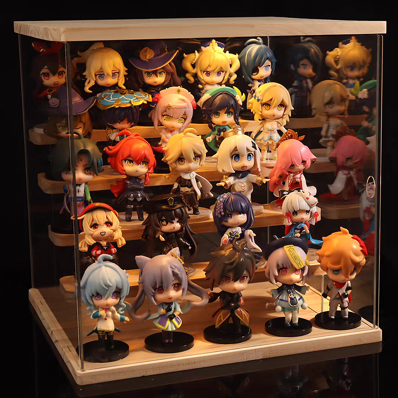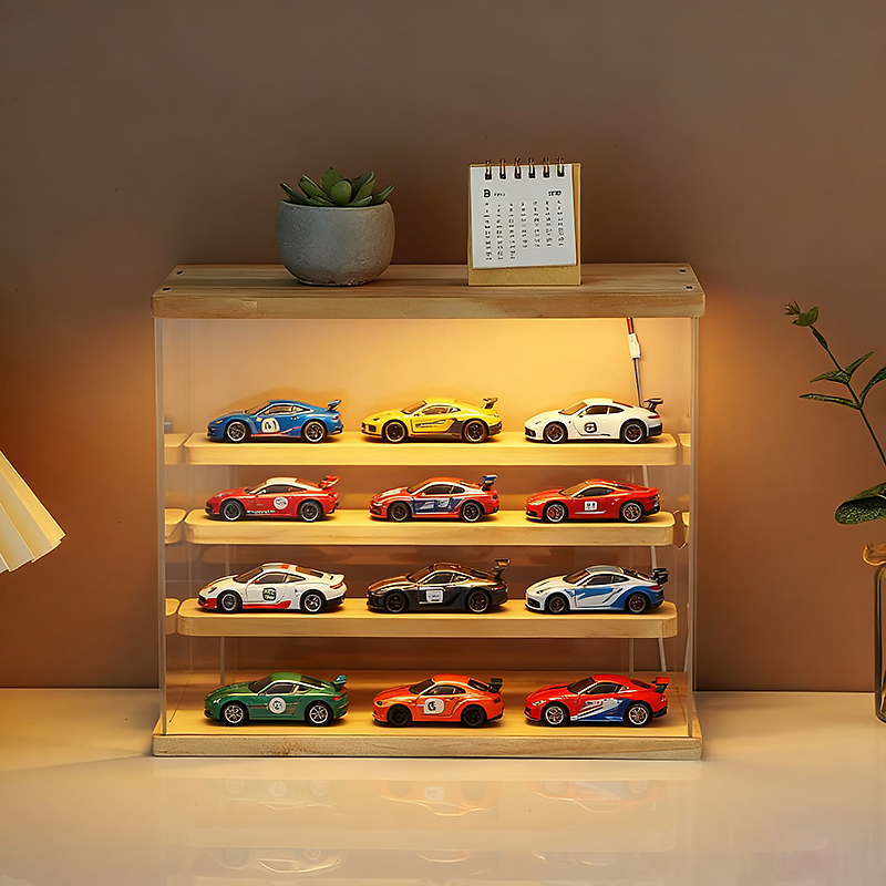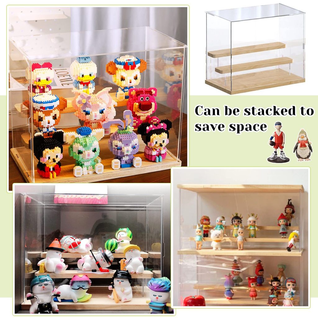 [LED+Akrilik+Kayu] Display Box Penyimpanan Bening Multifungsi Rak Pajangan Akrilik Mainan Gambar Parfum Figur cxq