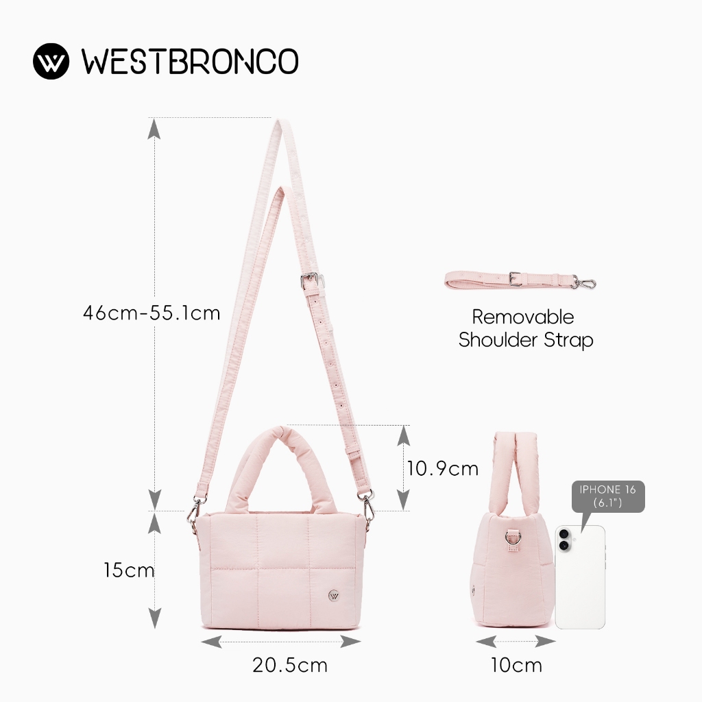 Westbronco [PUFFER CHERIE BAG] Tas nilon, Pegangan empuk, Risleting lancar, Saku di dalam, Tali bahu yang dapat dilepas, Tahan air, Tas selempang kecil