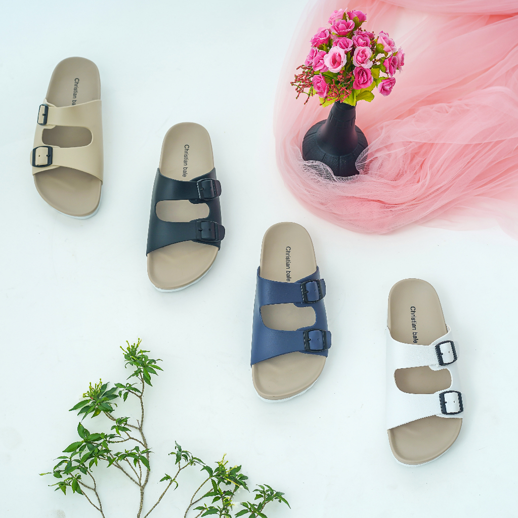 Christian Bale Jennifer sandal puyuh kulit flatform wanita ban dua gesper premium original