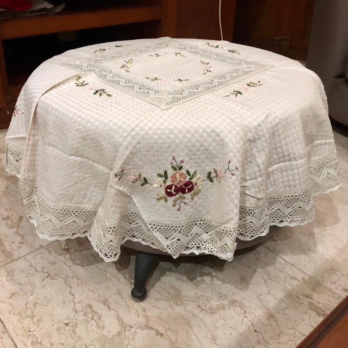 Taplak meja bulat 4 kursi/meja oshin/ meja betawi