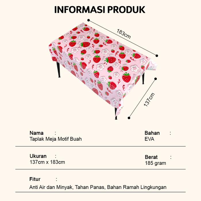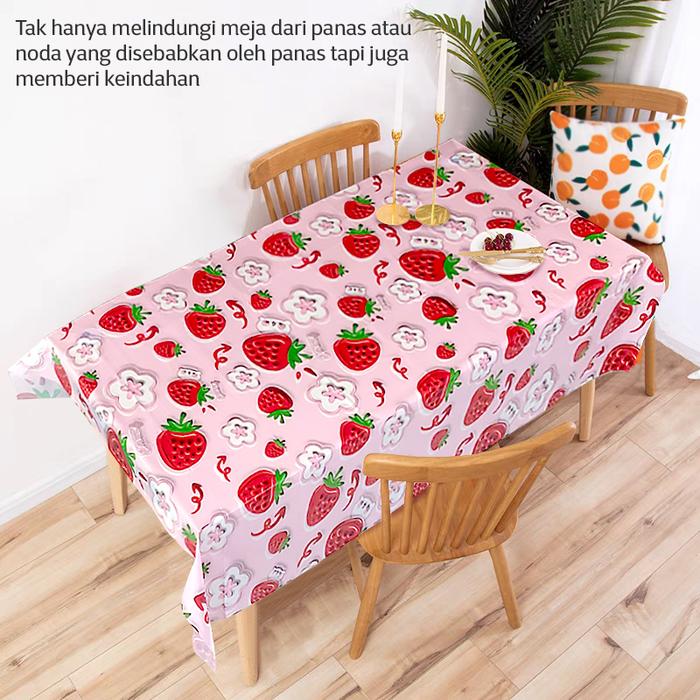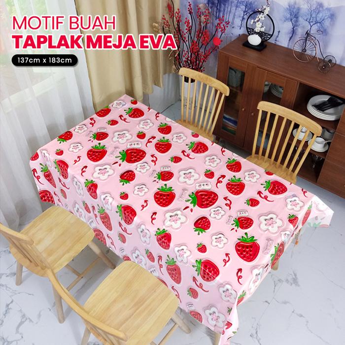 (D11-3F) Taplak Meja Makan Motif Strawberry Ukuran 137x183CM Bahan PEVA