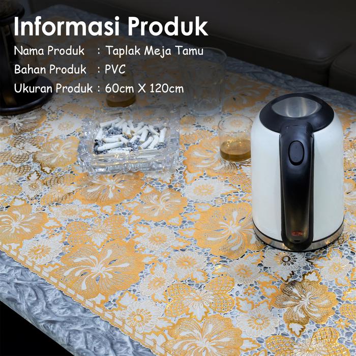 (D6 & D6-T) Taplak Meja Tamu Motif Bunga Ukuran 60x120CM Bahan PVC Anti Minyak & Air