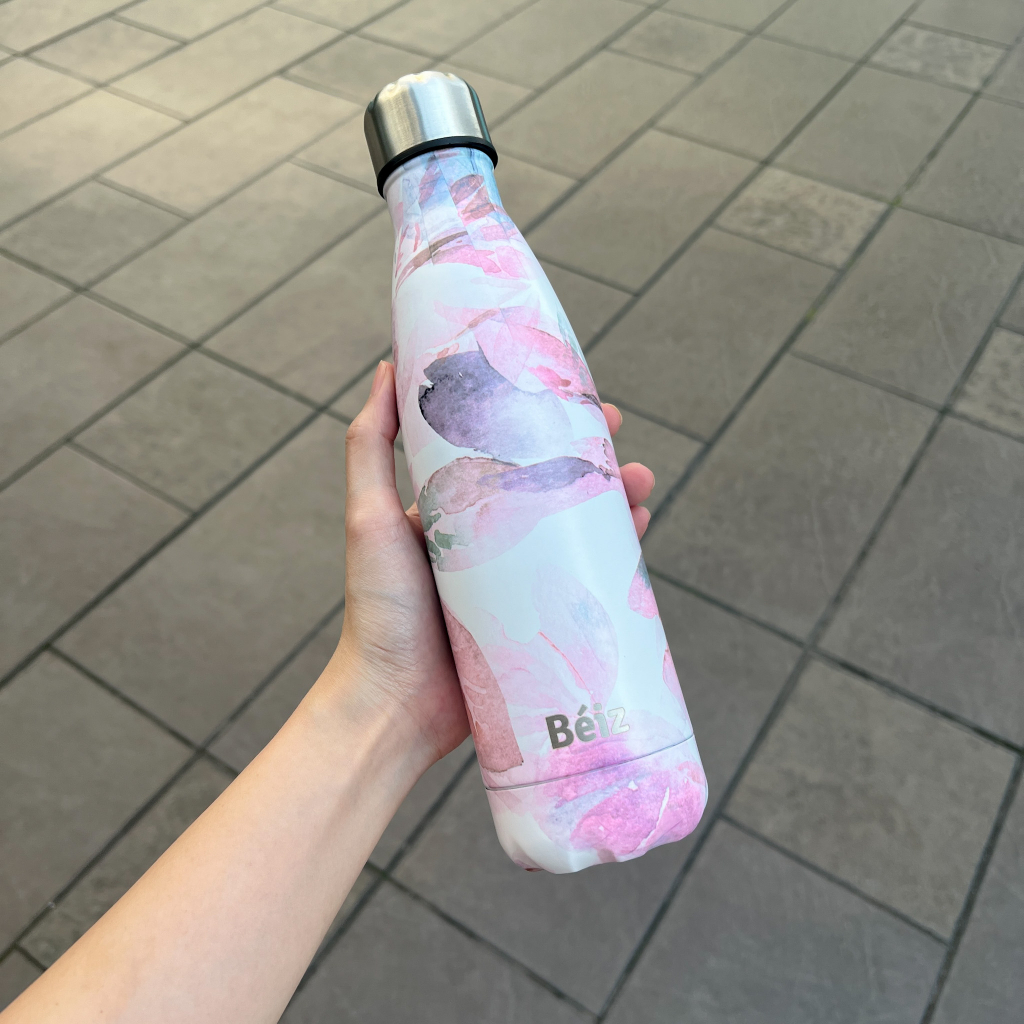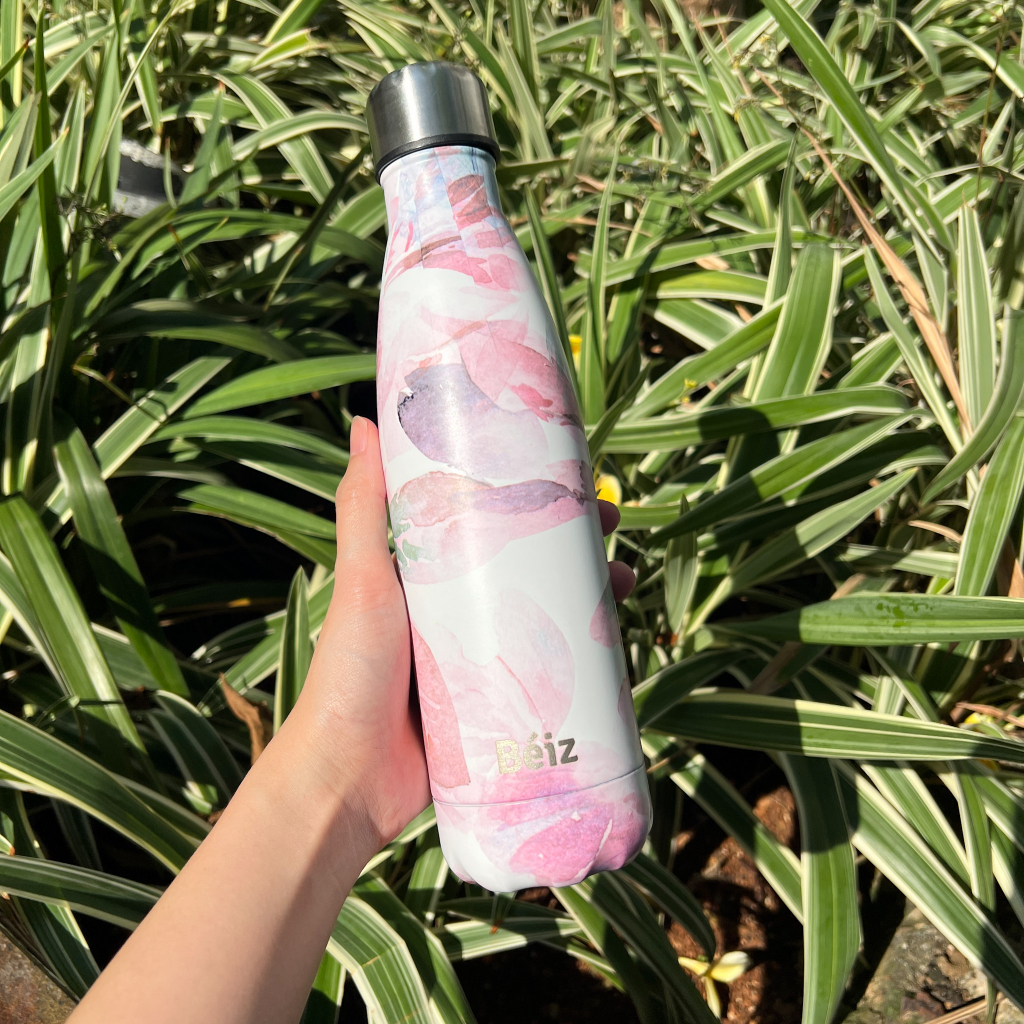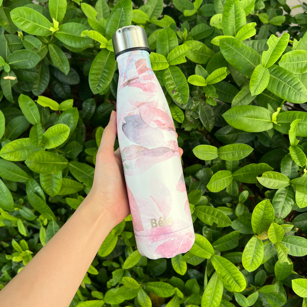 Tumbler Beiz Pink Leaf 500ML Stainless Anti Panas Dan Dingin