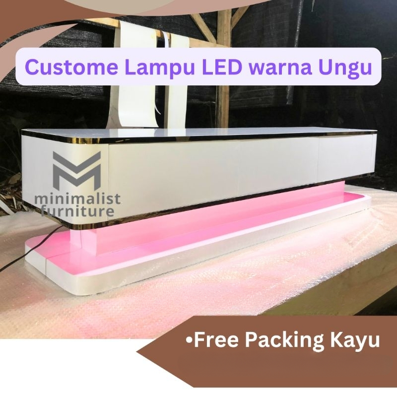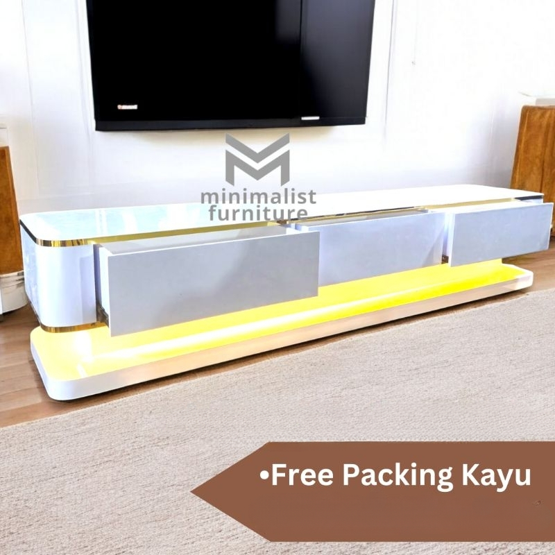 Meja TV Minimalist ern Putih List ld Dengan Lampu LED