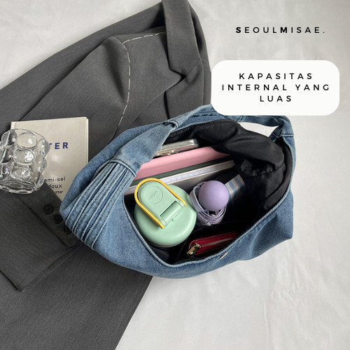 SEOULMISAE - Nayeon Bucket JEANS Bag Tas Bucket Bahu Bahan Jeans Korean Style Daily Bag