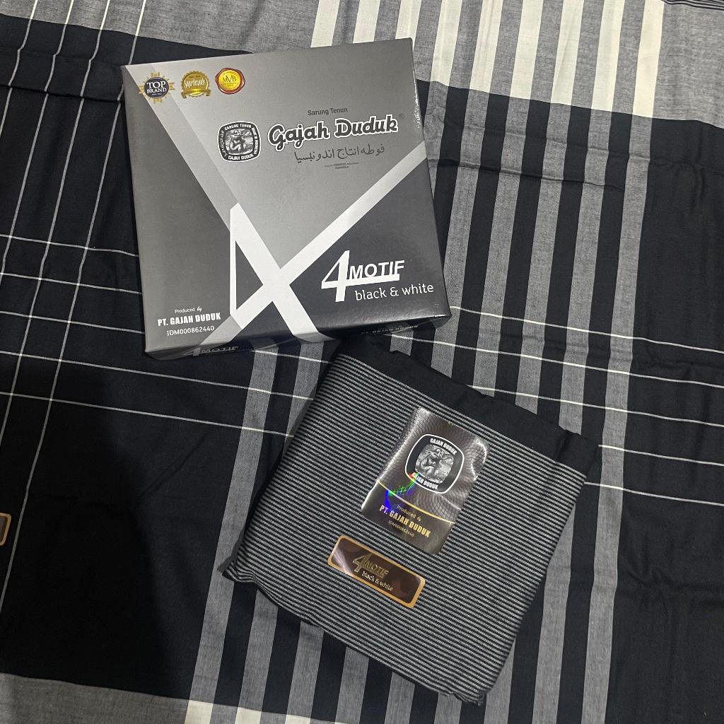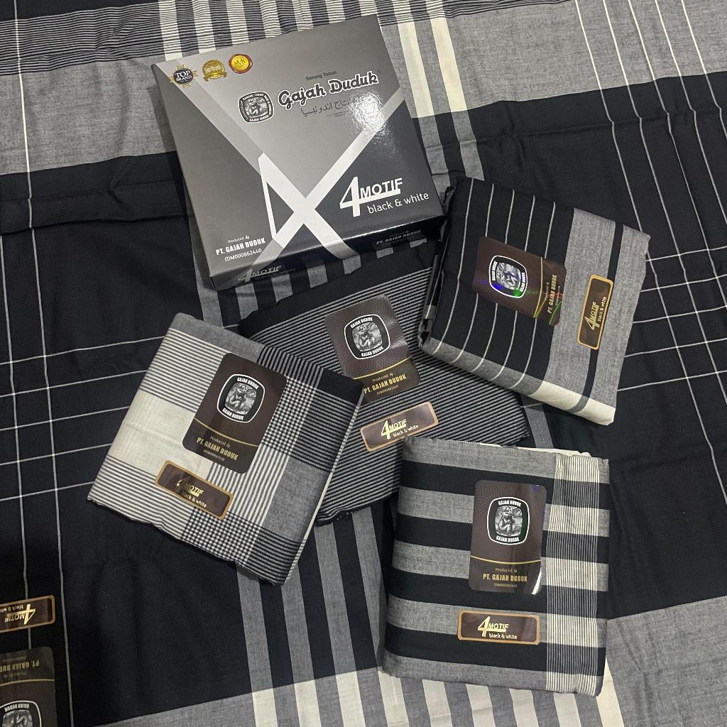 [Grosir 10Pcs / 20Pcs] Sarung Gajah Duduk Black & White BW Hitam Putih Elegan Motif Polos Kotak
