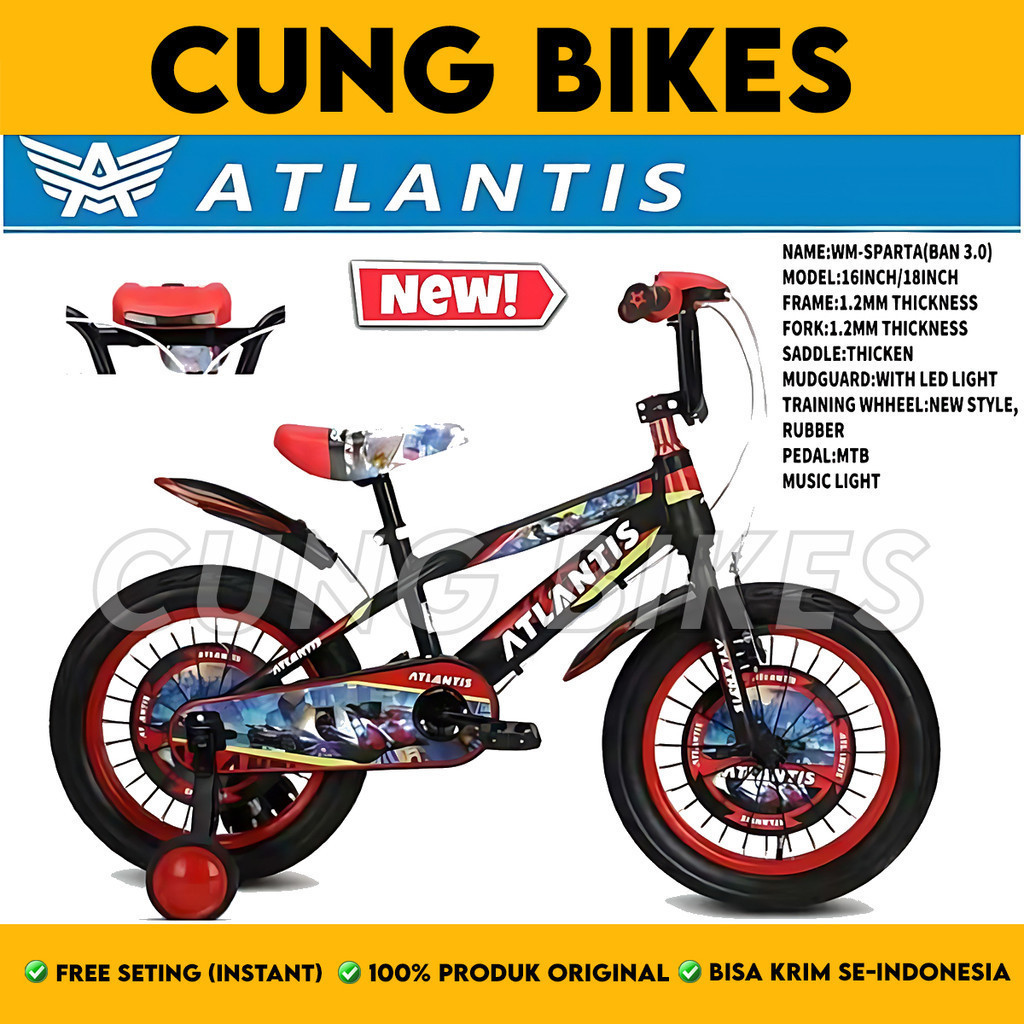 Sepeda Anak Laki BMX ukuran 12 16 18 inch ATLANTIS SPARTA NEW musik dan lampu Untuk usia 2-8 Tahun