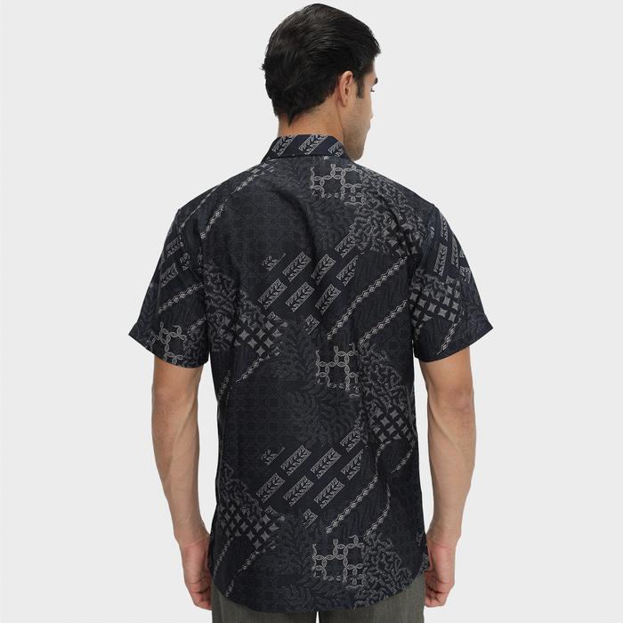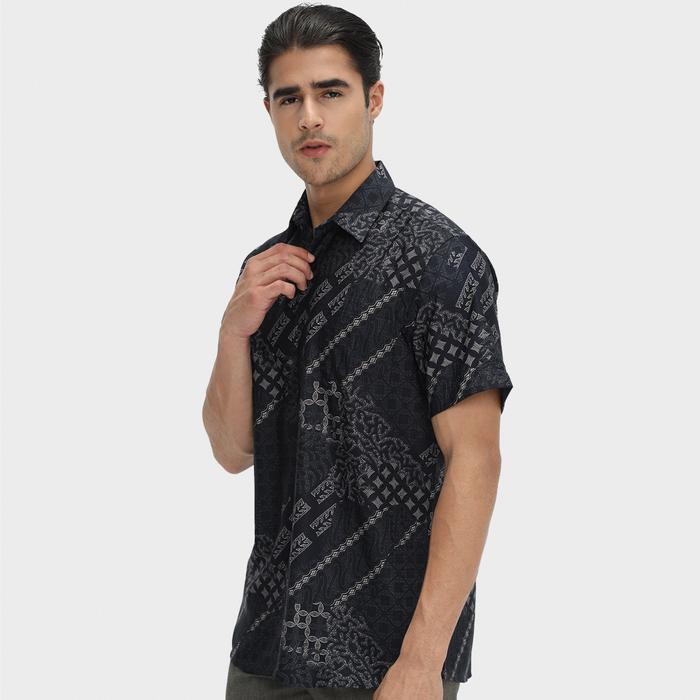 READY INSTANT JAYASHREE - Exclusive Slimfit Navya Black Kemeja Batik Pria Lengan Pendek- Baju Kerah