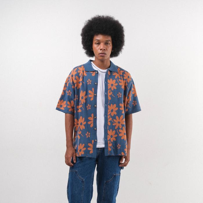 Noir Sur Blanc Men Flora Lounge Shirt Denim
