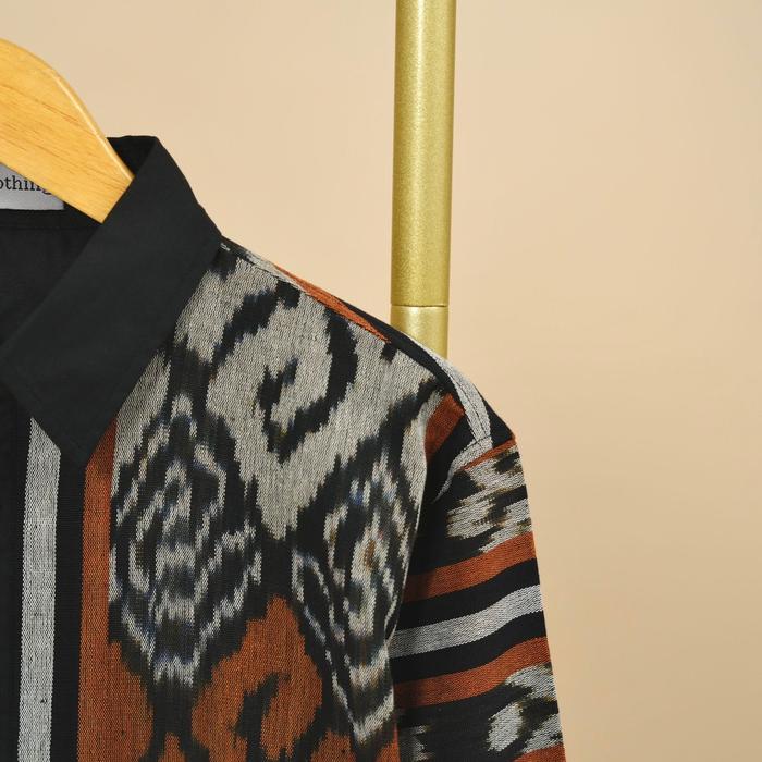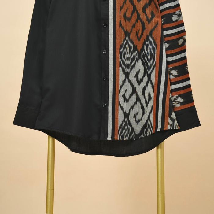 Kemeja Tenun Pria M0528 Hitam Tangan Panjang