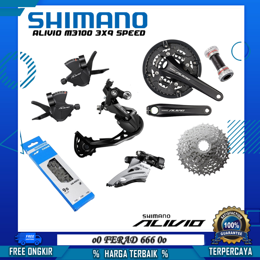 Groupset Shimano Alivio 9 Speed Series M3100 Hollowtech 2