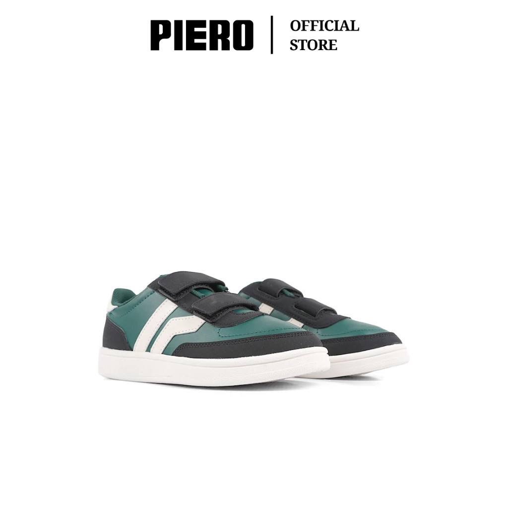 PIERO SEPATU SNEAKERS COURT DERBY JR GREEN BLACK OFF WHITE PIE1000158