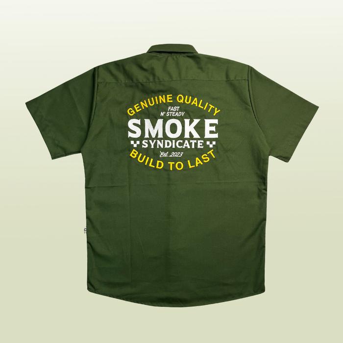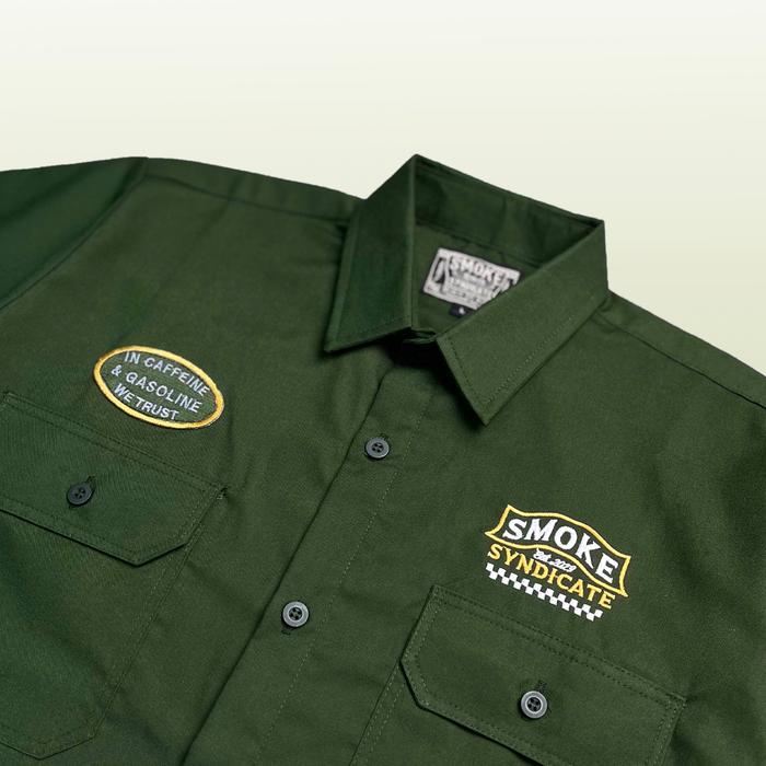 SMOKE Workshirt Kemeja "BUILD" Hijau Army Katun Slim-fitting Nyaman casual pria slim fit motor