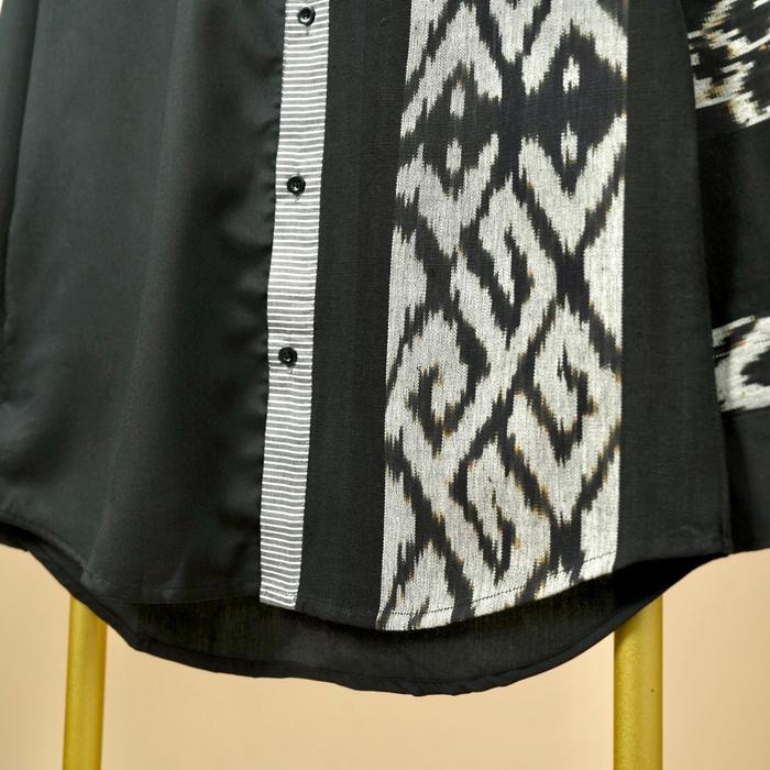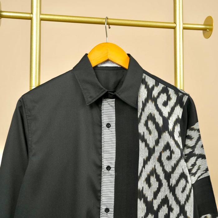 Kemeja Tenun Pria M0498 Hitam Tangan Panjang Baju Cowok