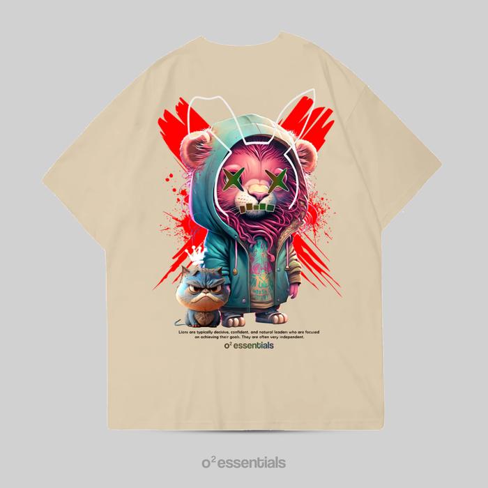 O2 Essentials Kaos Oversize Premium Pria dan Wanita - Lion X, Atasan Pakaian Cotton Combed