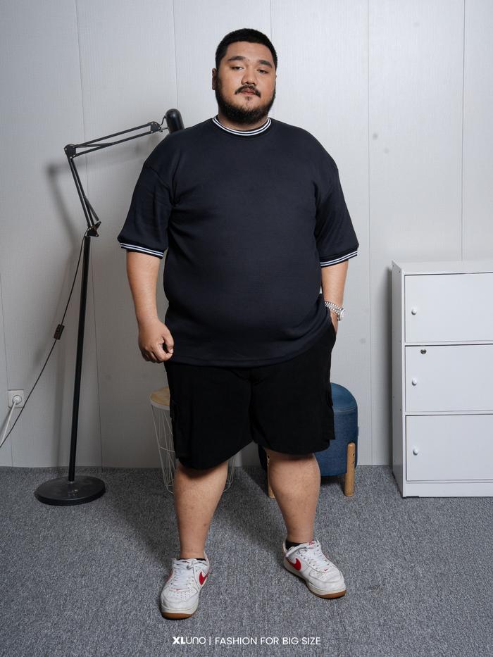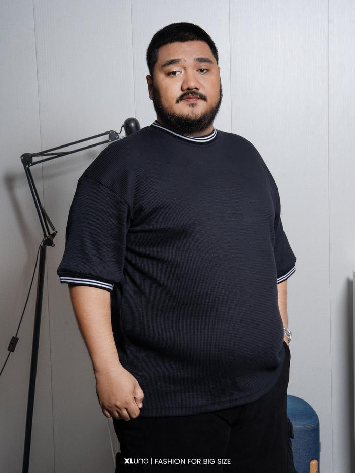 XLUNO Waffle Tee Black Kaos Pria Jumbo Knit Big Size Lengan Pendek