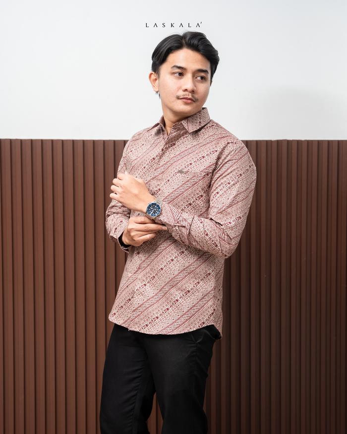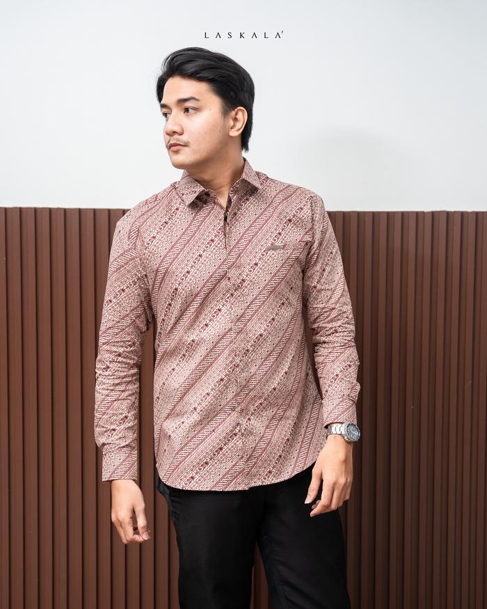 Laskala Batik Premium Seoul Kemeja Batik Pria Slimfit Lengan Panjang