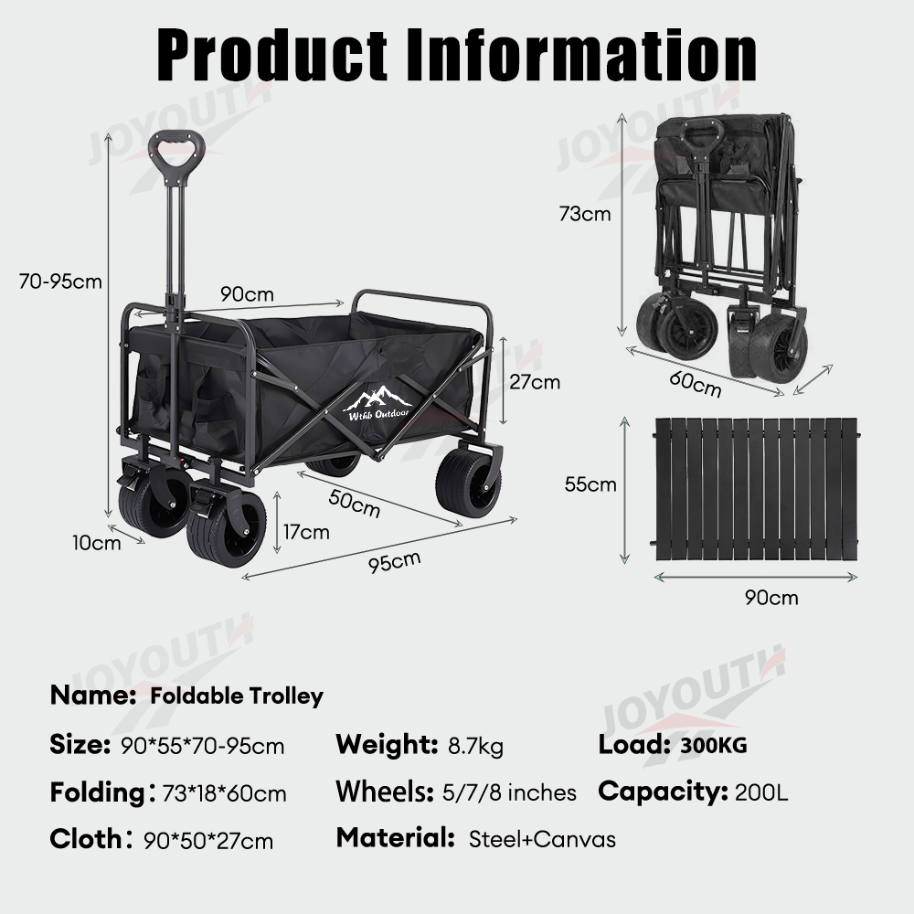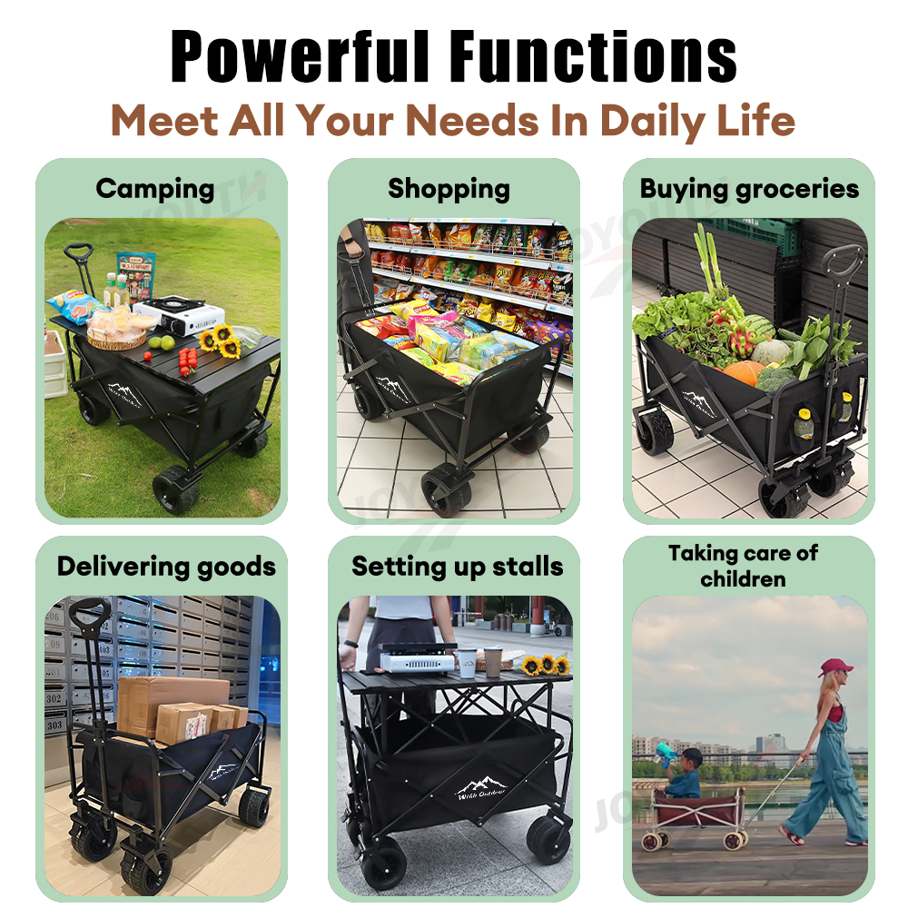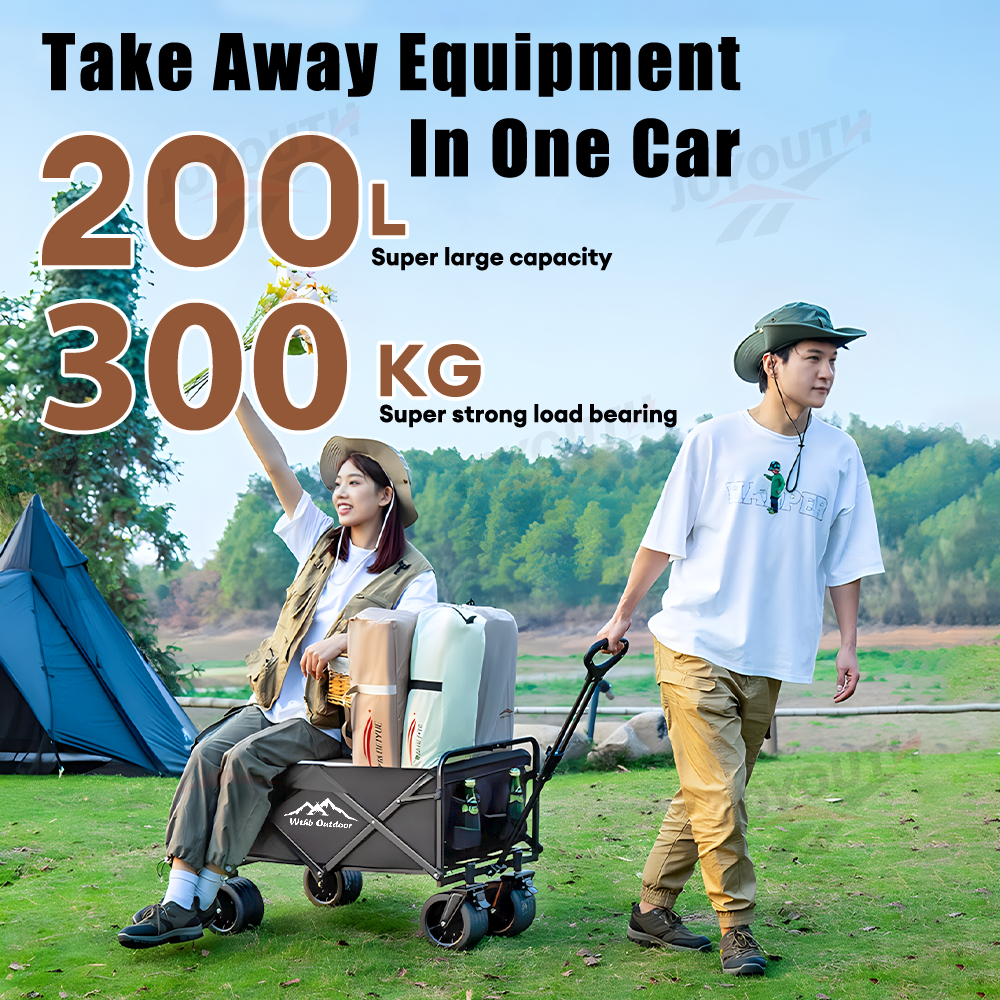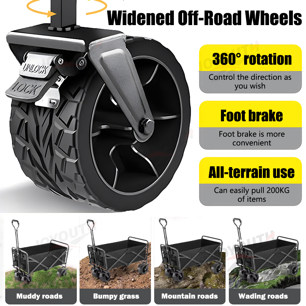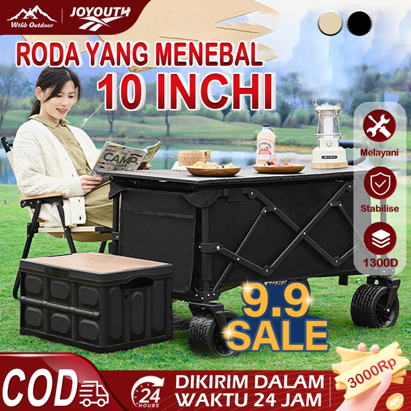 JOY Troli Barang Outdoor Trolley Camp Wagon Keranjang Belanja Brake Troli Piknik Besar Roda Besar
