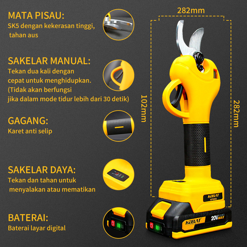 KEELAT-KPS002 Pemotong Dahan Elektrik Cordless Brushless Gunting Dahan dan Ranting LXT Baterai