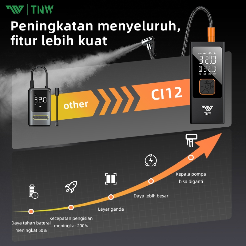 TNW CI12 Pompa Ban Motor Dan Mobil Electric Air Pump Car Air Pump Tire Inflator Portable Mini Pompa Angin Elektrik 10000