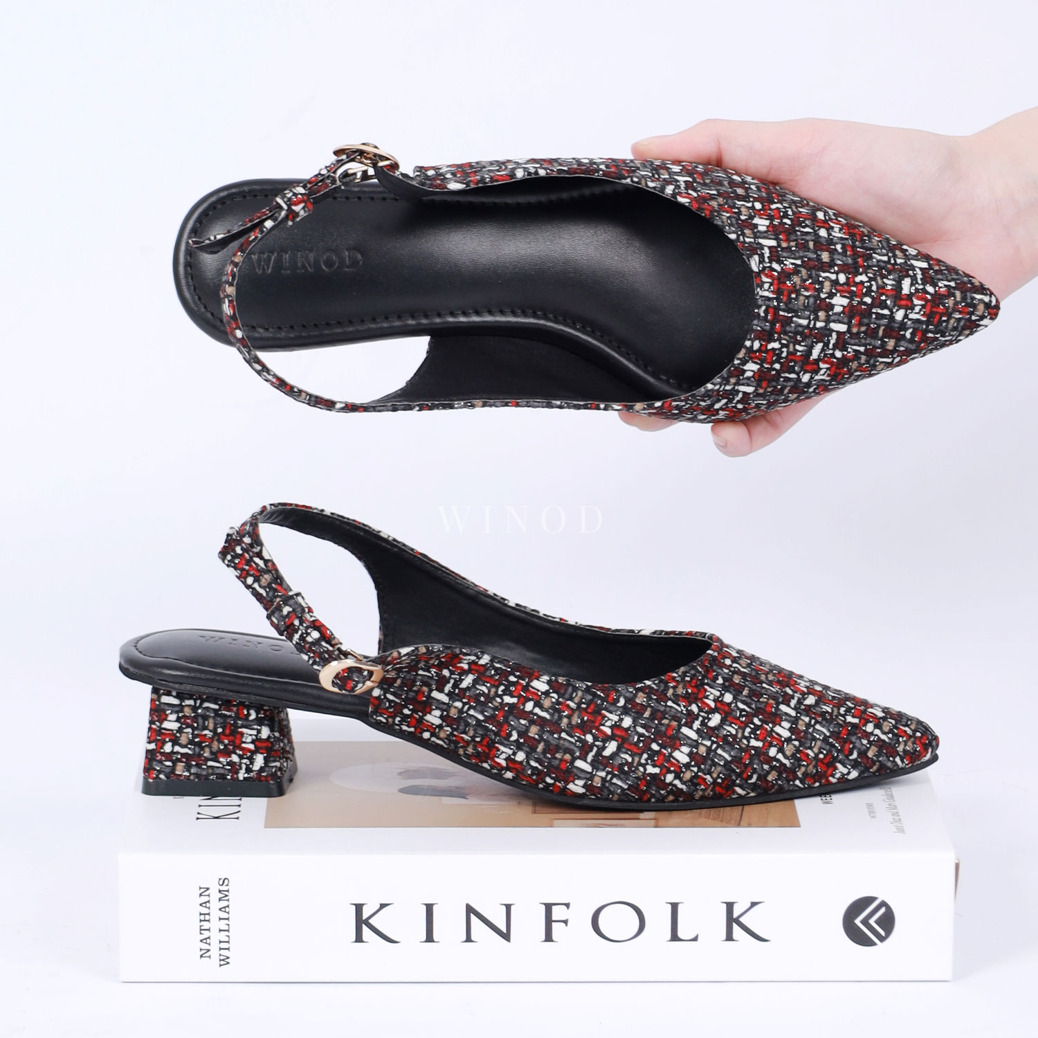 WINOD Given Heels 3cm Sepatu Kantor Wanita Model Tweed Hak Tinggi Daily