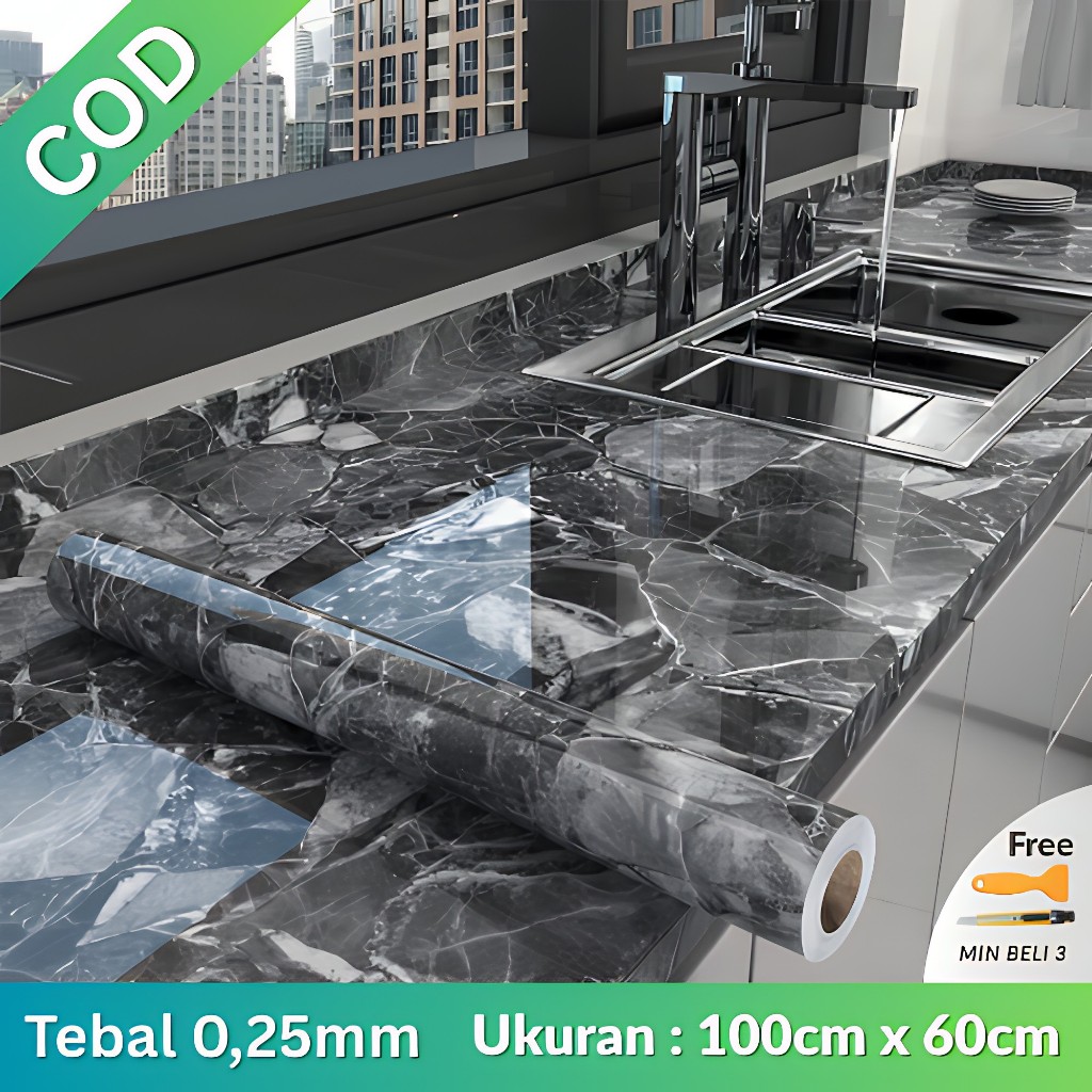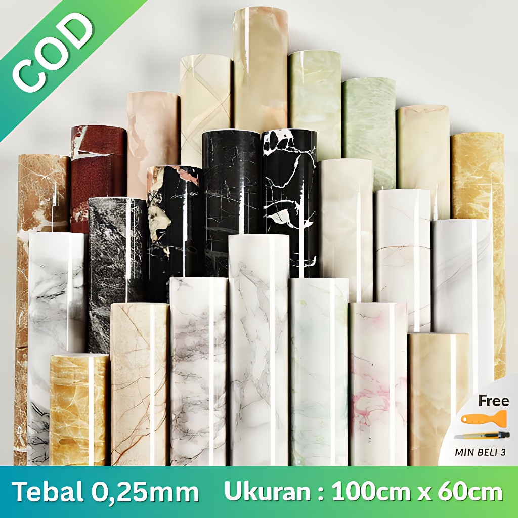 Wallpaper Kamar Mandi Anti Air - Stiker Dinding Glossy Motif Marmer Granit Tebal