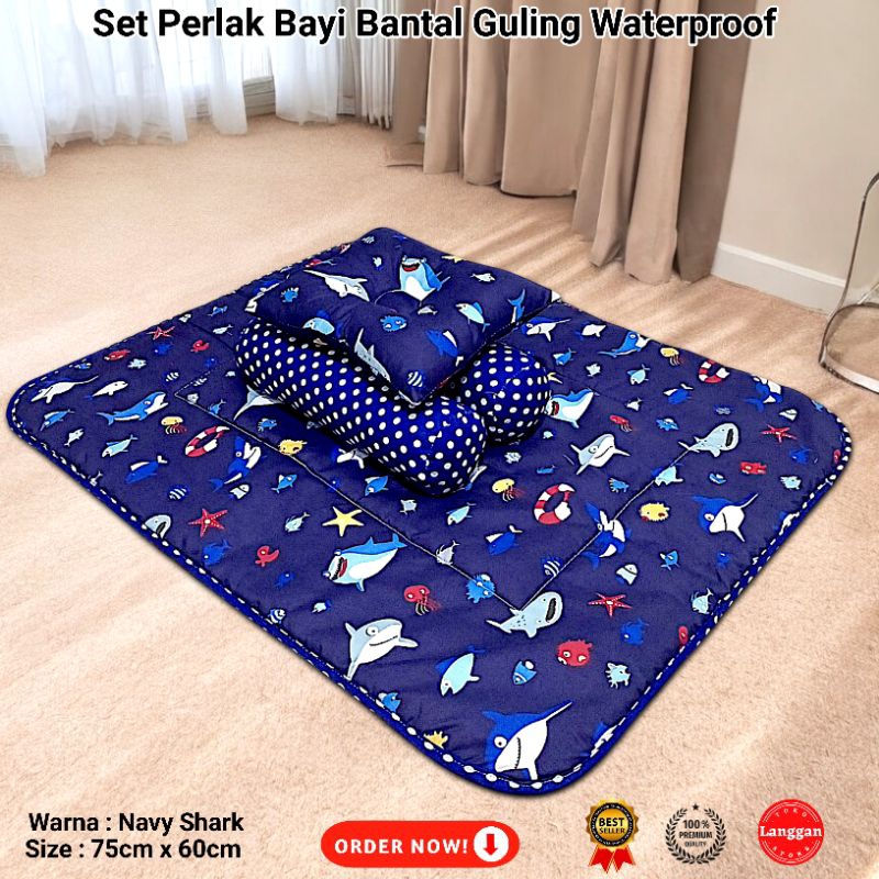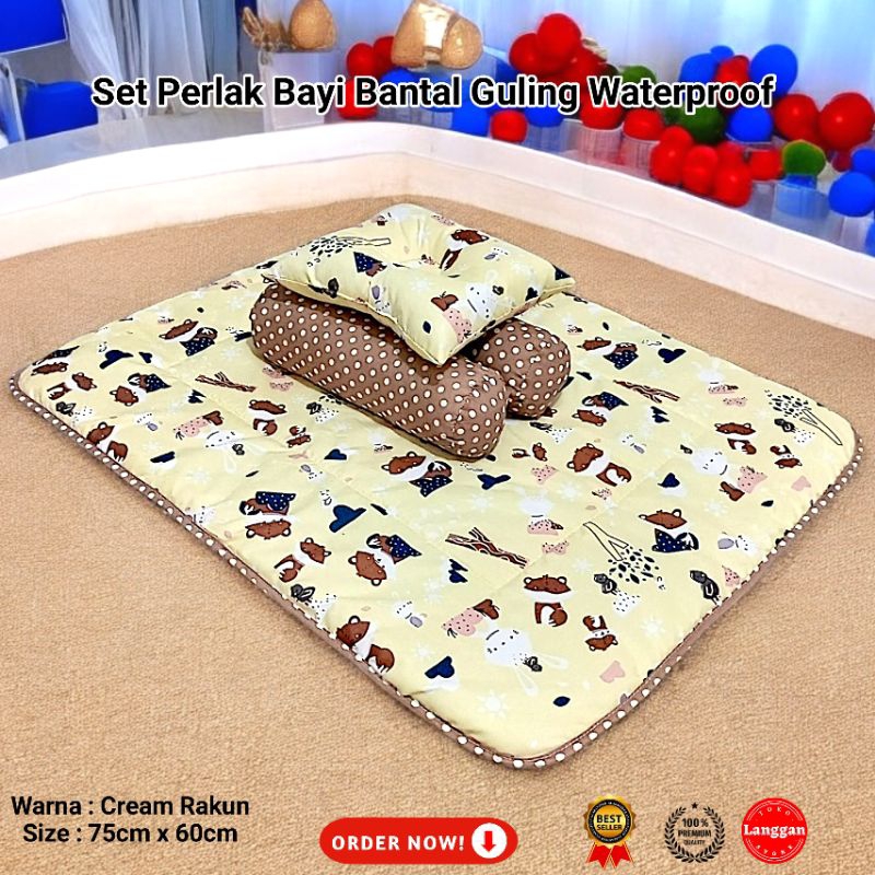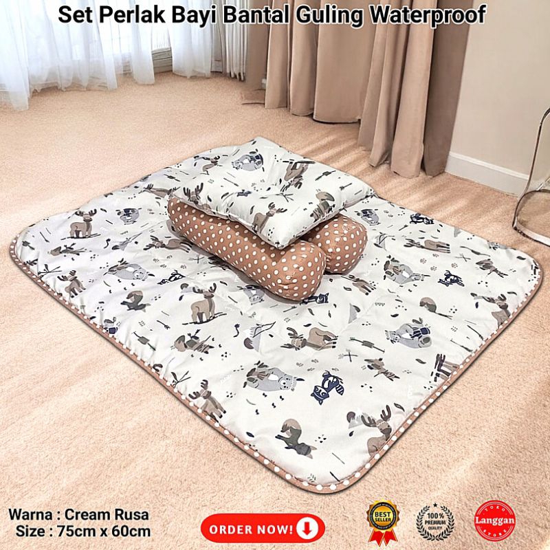 Perlak Bayi Waterproof Alas Ompol Bayi Bolak Balik Plus Set Bantal Dan Guling Kwalitas Bahan Terbaik nyaman Untuk si Baby / Matras Bayi