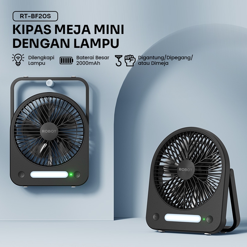 ROBOT Kipas Meja Portable dengan Lampu 2000mAh Rotasi 180° Kipas Gantung RT-BF20S Original - Garansi 1 Tahun