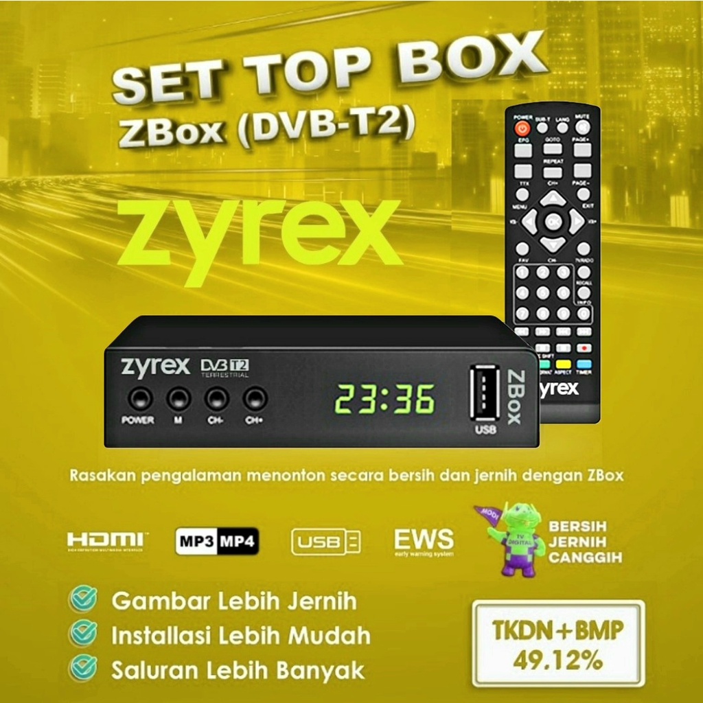 SET T0P BOX STB ZYREX ZBOX DVB-T2 TV DIGITAL - GARANSI RESMI - SET T0P BOX STB MURAH