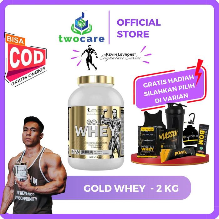 Kevin Levrone Gold Whey Protein 2000 Gram Whey Concentrate 2 Kg - Coklat, Shaker