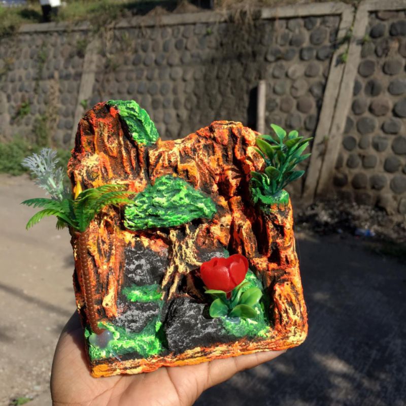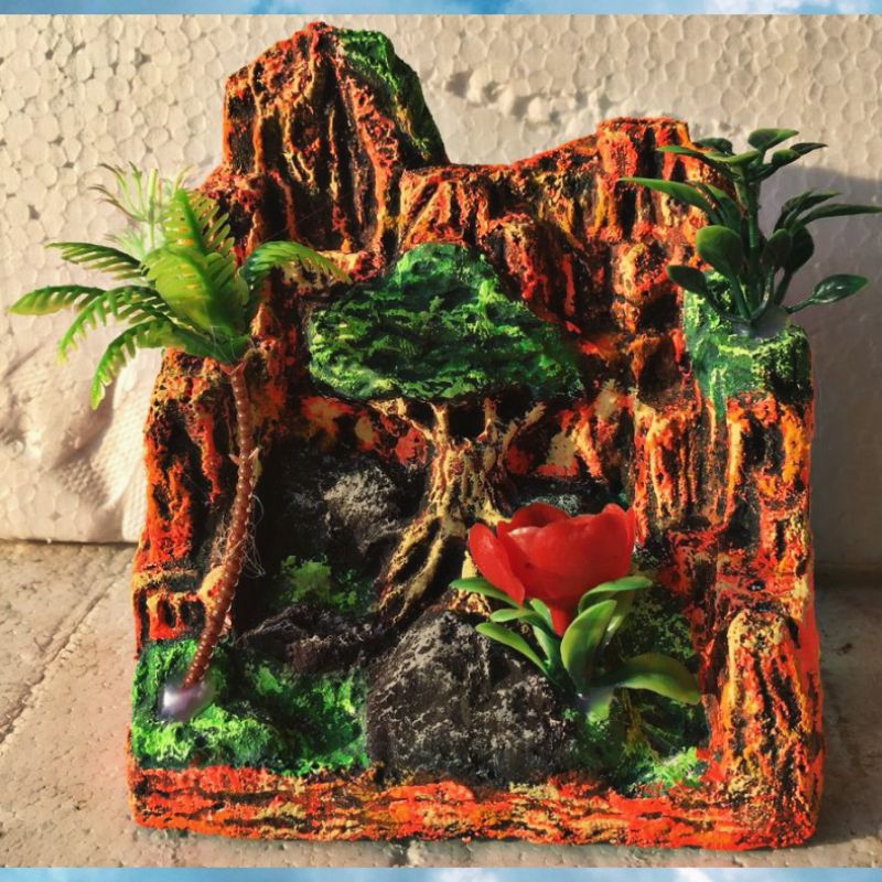 ornamen aquarium unik aquascape pohon bunga