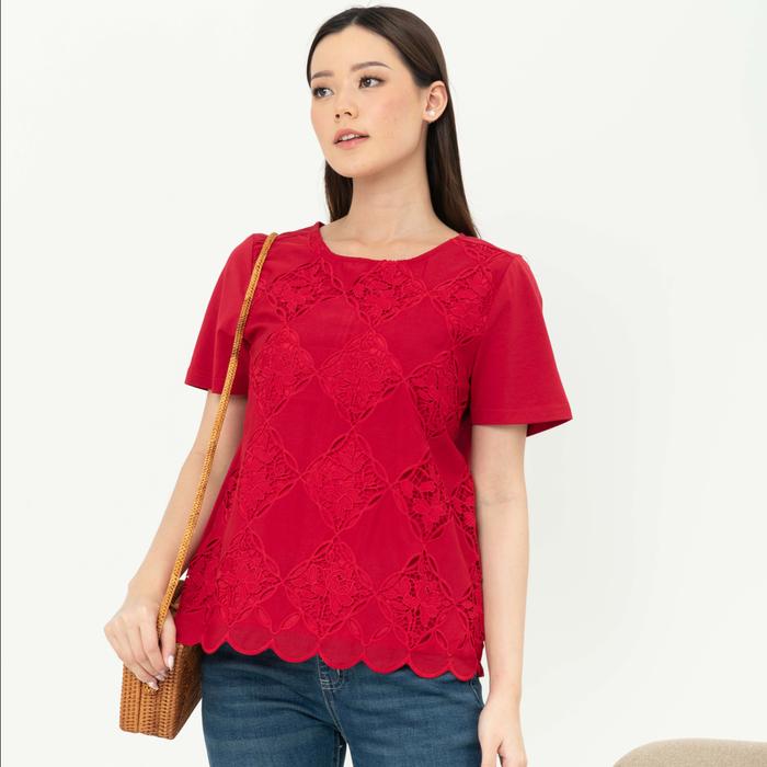 Sister'S - Atasan Brukat Kombi Kaos Y8571 Ze - Putih, L