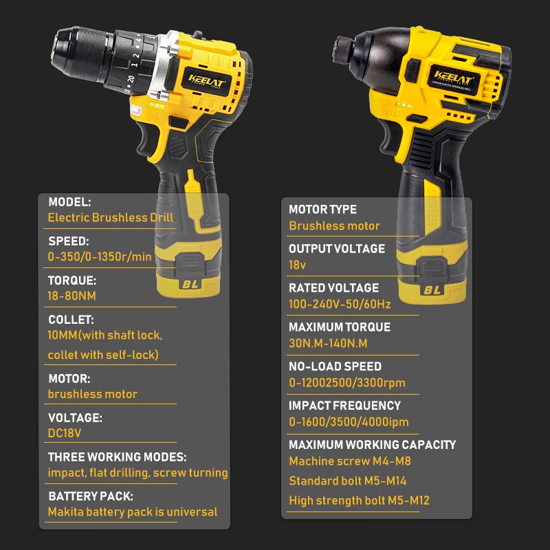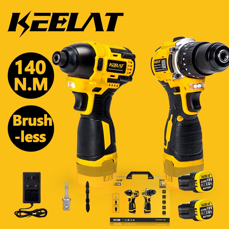 KEELAT-KCID02 2 IN 1 150NM Brushless Cordless Mesin Bor 18V Impact Driver Obeng Listrik