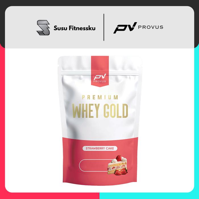 Provus Premium Whey Gold 900Gr - Whey Protein Concentrate Susu Fitness - Strawberry Cake - 900Gr, Shaker