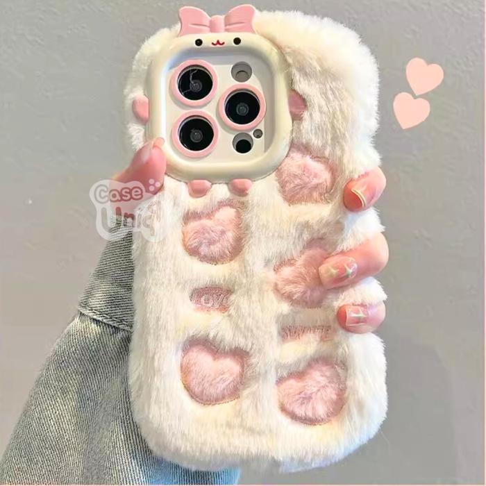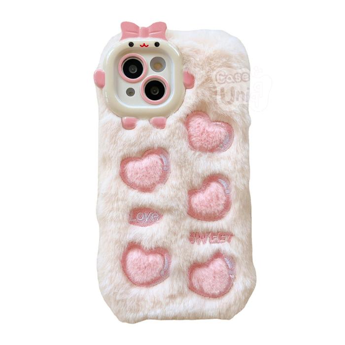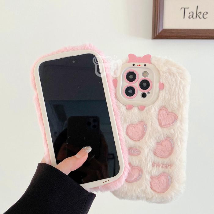 Caseuniqq Case Fluffy Heart Lembut Hp Tersedia Tipe Plus Casing Compatible With Iphone Softcase Cover - White Fluffy, I