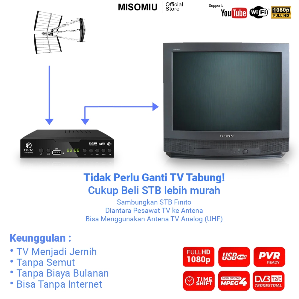 Set Top Box Finito DVB T2 TV Siaran Digital Receiver STB BISA Youtube