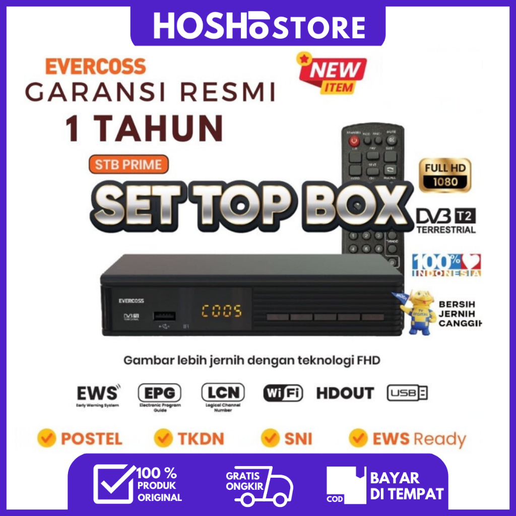 Terlaris EVERCOSS PRIME Nextron TR1000 & HUANGMI Set Top Box DVB-T2, Digital & YouTube WiFi
