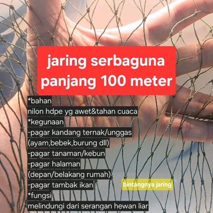 Jaring Ayam Panjang 100 Meter Pagar Kandang Ternak Tanaman Awet Tahan Cuaca Bahan Nilon Pe D6 Lubang 4 Inc Bonus Tali At