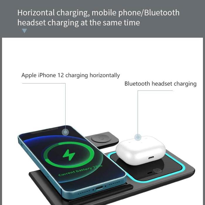 3In1 Wireless Charger Stand Station Hp Mobile Fast Charging Smart Watch Airpods Multifungsi Charge Pengisi Daya Batrei F