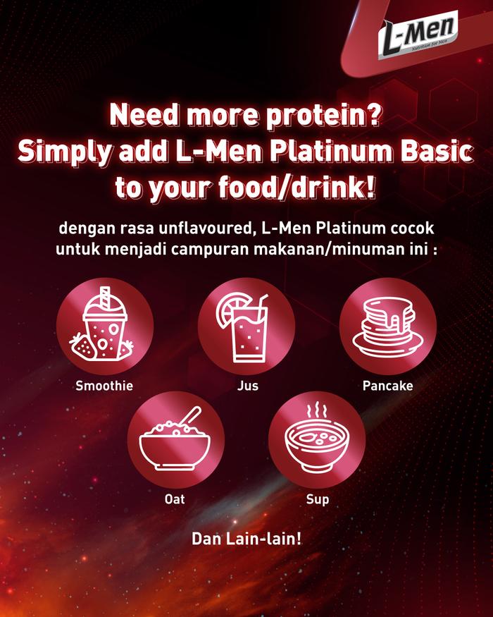 Buy 500K Free L-Men Shirt - L-Men Platinum Basic Whey Protein Unflavoured 800Gr 1,7Lbs - 25G Whey Protein - 21 Serving -