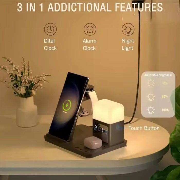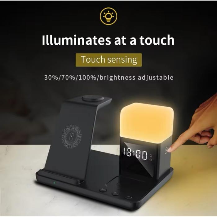Elavo 5 In 1 Qi Wireless Charger Multifungsi Charging Lampu Tidur Alarm Clock Jam Digital Cocok Untuk Samsung Galaxy Dev