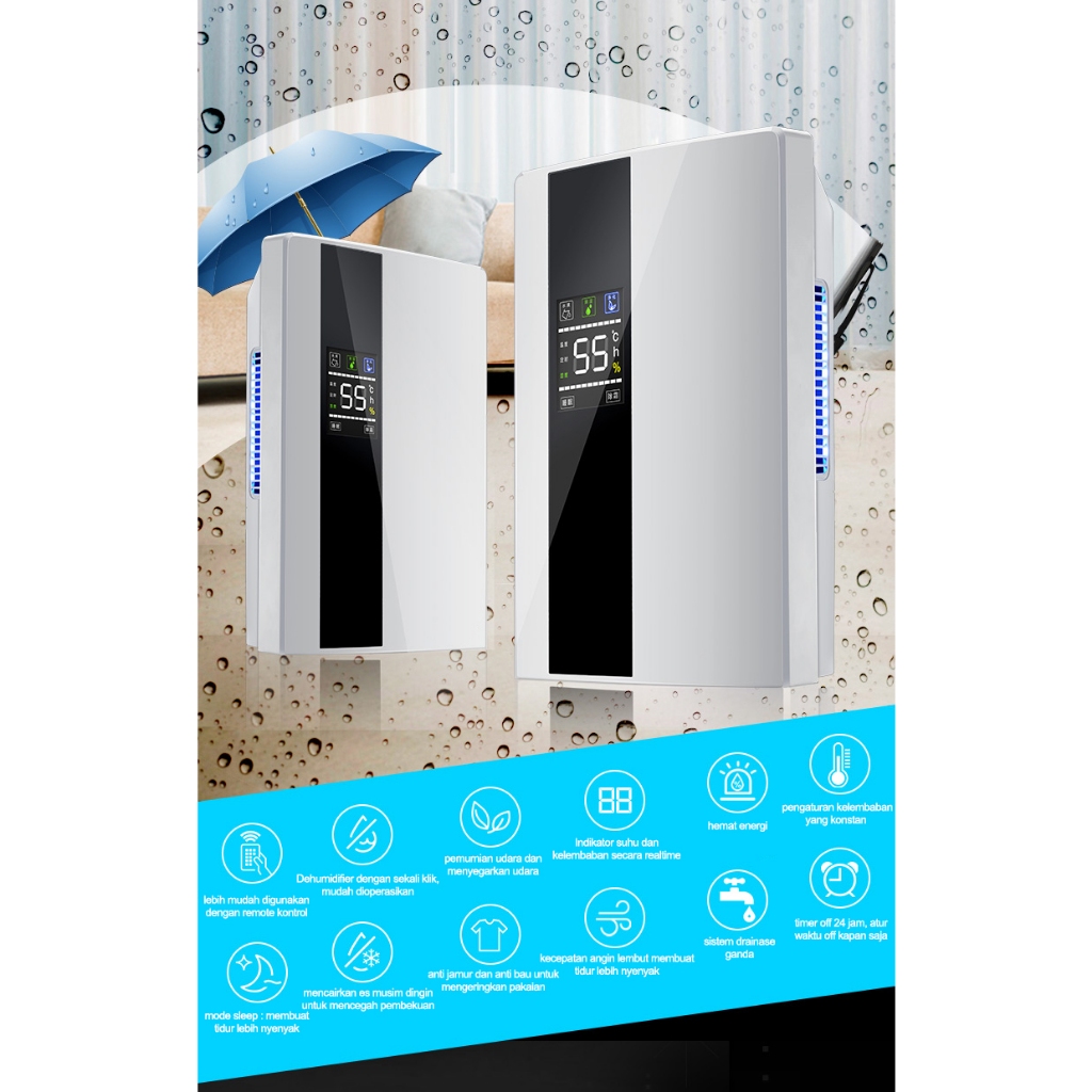 Dehumidifier 2,2L/dehumidifier cerdas rumah/dehumidifikasi senyap/2,2 liter dehumidifier rumah pintar pengering udara layar LCD layar besar