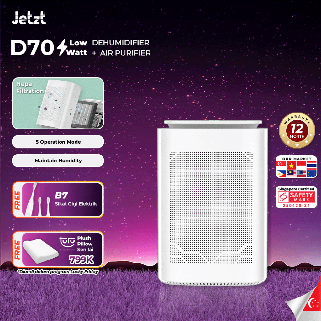Jetzt D70 Dehumidifier Air purifier Mengurangi Kelembapan Ruangan 1.6L dengan HEPA Filter & Anion | Digital, Senyap, Hemat Listrik
