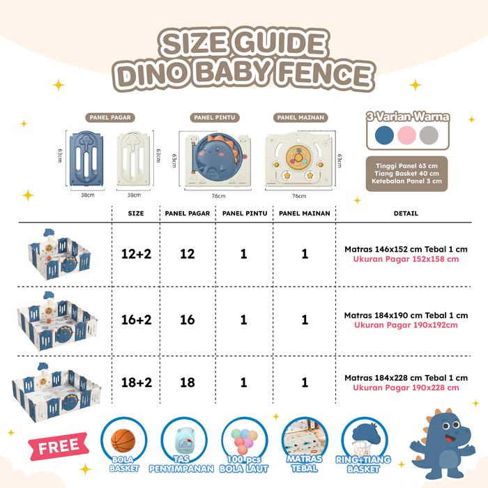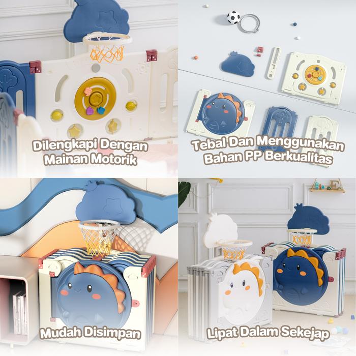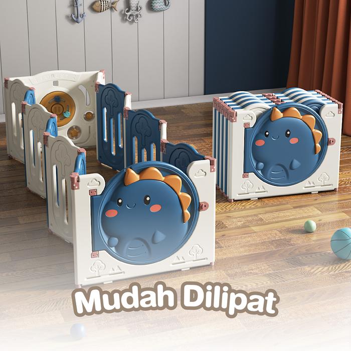 Toyszoona Dino Baby Play Fence Pagar Bayi Baby Fence Pagar Bermain Anak - D12+2-Grey-Fs