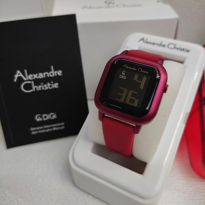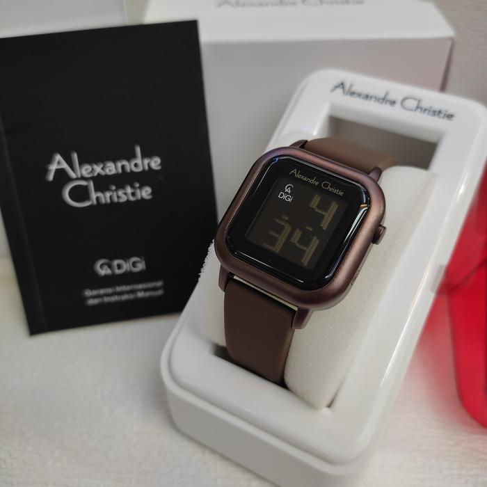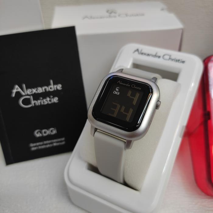 Jam Wanita Digital Original Alexandre Christie Ac 9392 Lh Rubber Steel - Grey